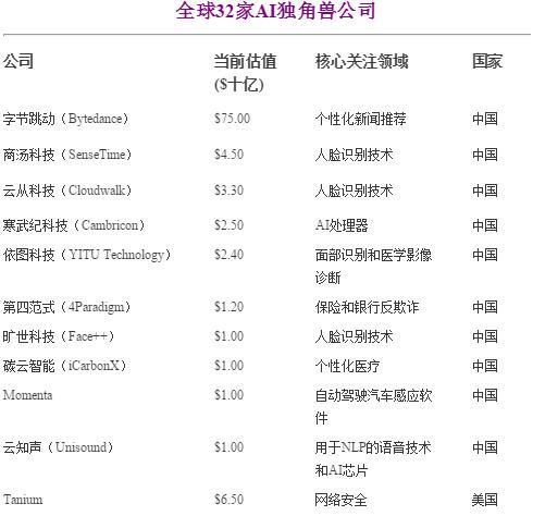全球AI独角兽名单中,中美各占多少?